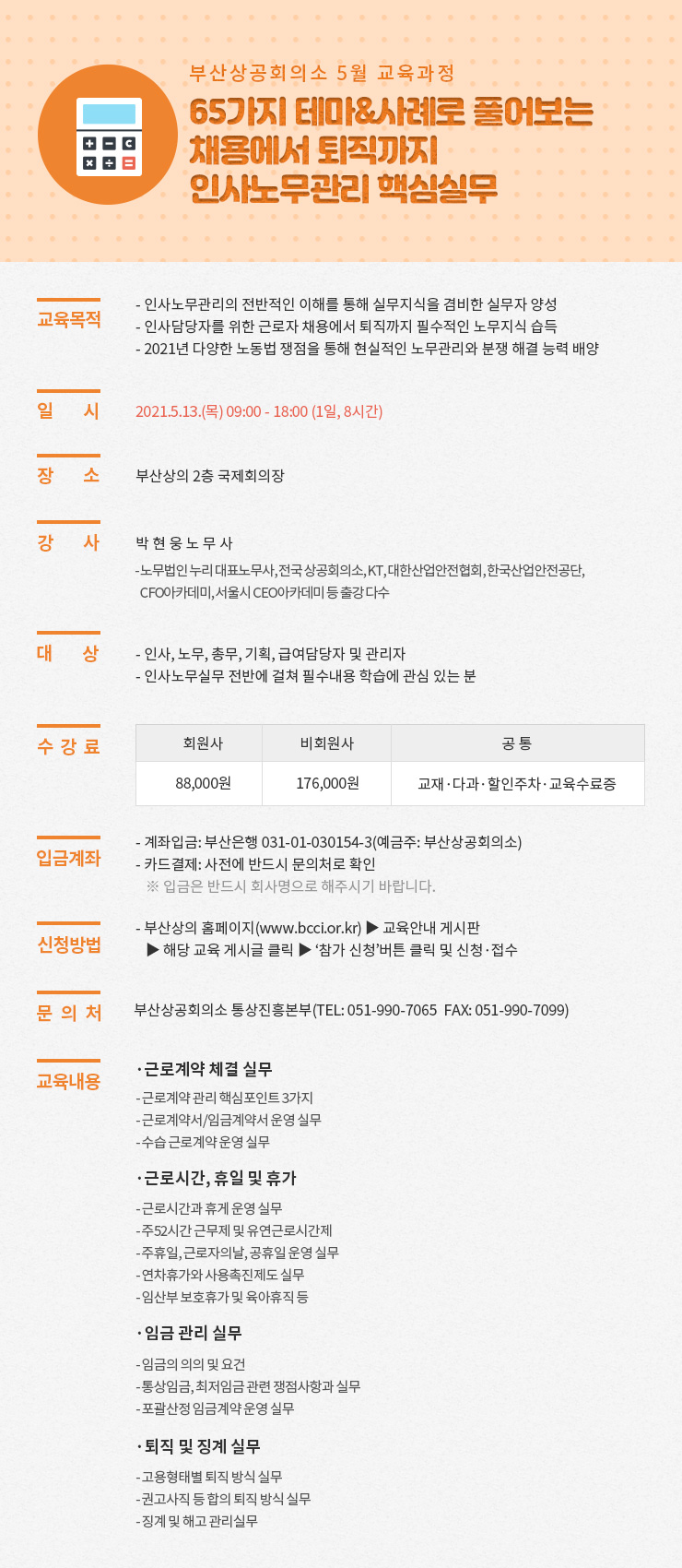 (교육당일에 영수 전자세금계산서 발행, 부산은행 031-01-030154-3)