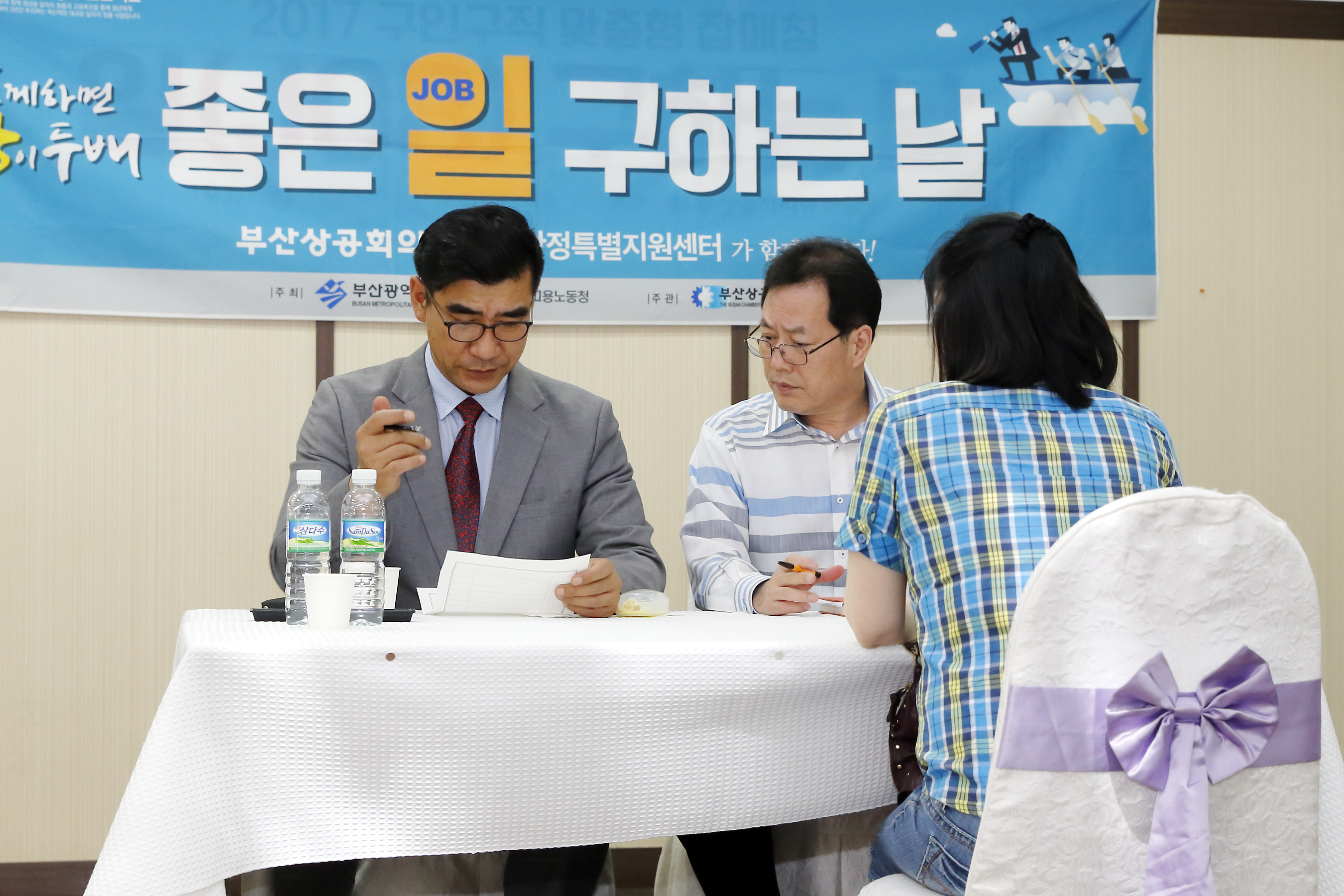 부산상공회의소 고용안정특별지원센터는 지난 7월 26일(수) 2층 국제회의장에서 부산일자리종합센터와 협업으로 「좋은 일 구하는 날(job)」을 개최하였다.이 행사는 조선·해운 등 고용위기업종 퇴직 근로자들을 위해 재취업의 기회를 제공하는 구인·구직 자들의 만남의 장으로 수시로 진행하고 있다. 이날에는 부산 강서구에 소재한 제조업체인 지엔피테크, ㈜오아제 등 2개 업체가 참여하였다.