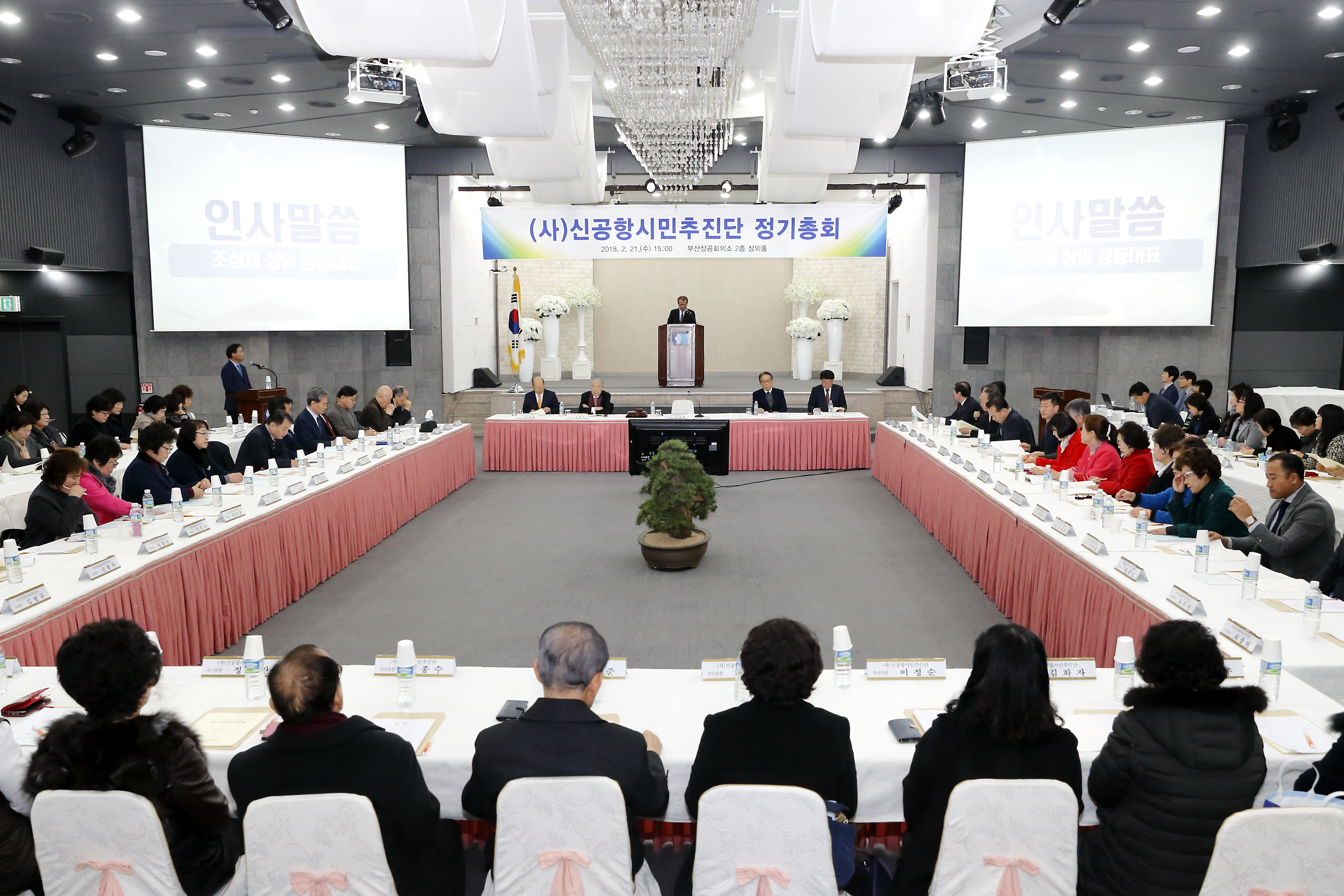 부산상공회의소는 지난 2월 21일(수) 오후 3시, 부산상의 2층 상의홀에서 「(사)신공항시민추진단 정 기 총회」를 가졌다. 정기총회는 지난해 추진해 온 주요 사업 실적과 2018년 사업계획 및 추진방향 에 대해 보고하기 위해마련되었다. 조성제 상임공동대표는 인사말을 통해 지난해 신공항시민추진단은 시민들을 대상으로 신공항의 필요성에 대한 공감대 확산을 위해 다양한 사업을 추진해 왔으며, 뿐만 아니라 각종 전문가 토론과 여론조사, 언론 홍보 등을 통해서도 신공항 건설의 필요성과 당위성을 널리 알려 왔다며, 특히 올해는 김해신공항의 공항개발기본계획이 마무리되고 기본설계와 실시설계가 시작된다는 점에서 중요한 전환점이 될 것이라고 말했다. 또한, 2018년도 추진목표인 ‘24시간 안전하게 운영 가능한 김해신공 항’ 건설을 위해 소음문제에서부터활주로 길이나 폭 등의 현안 과제를 해결할 수 있는 방안을 모색 하고 이를 기본계획이나 설계에반영해야 하는 중대한 역할이 시민추진단에 주어져 있다며 신공 항 건설이 부산의 미래를 위한 시대적 사명이라는 생각으로 금년 한해 시민추진단 사업에 보다 더 적극적으로 참여해 주시길 부탁드린다고 당부하기도 했다. 한편, 이번 정기총회에는 시민추진단 조성제(부산상의 회장) 상임공동대표를 비롯한 지역사회 각계의 대표와 시민추진단 150여명이 참석했다.