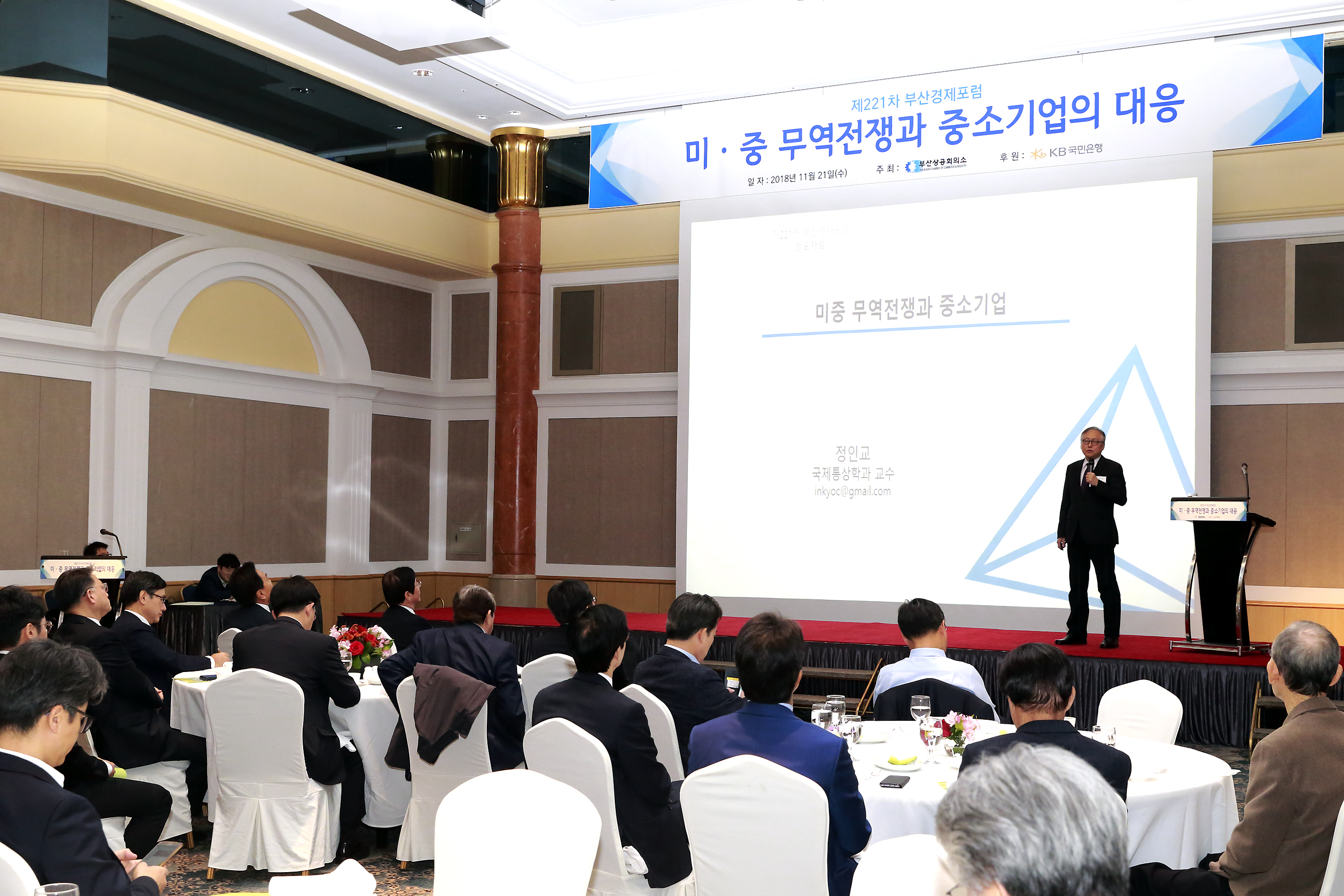 부산상공회의소가 주최하고 KB국민은행이 후원하는 ‘부산경제포럼’세미나가 지난 11월 21일(수) 오전 7시 부산롯데호텔에서 부산상의 임원과 지역 기업인, 경제 유관기관 단체장 등 회원 150여명이 참석한 가운데 개최됐다.