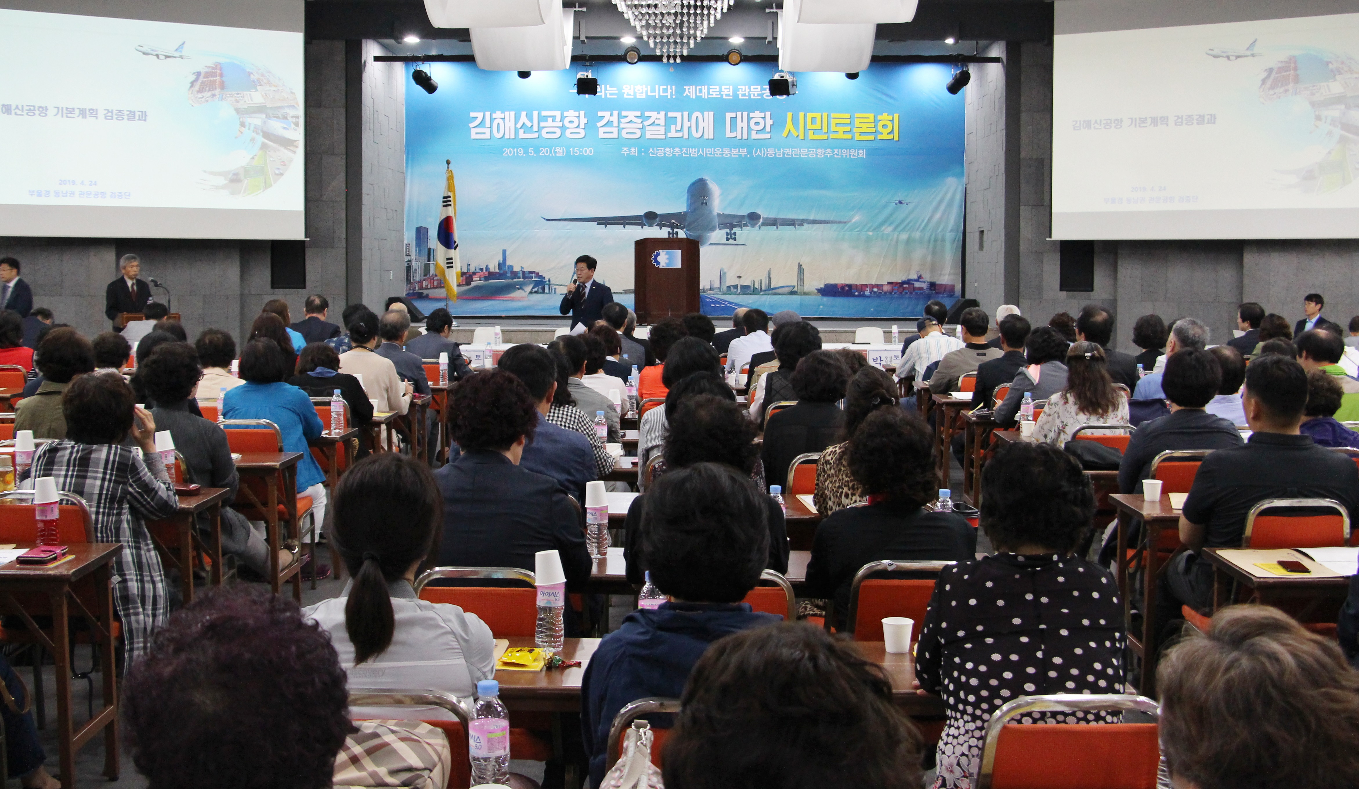 (사)동남권관문공항 추진위원회(상임공동위원장 허용도 부산상공회의소 회장)는 5월 20일 오후 3시 부산상의 2층 상의홀에서 신공항추진범시민운동본부와 공동으로 지역주민 200여명이 참석한 가운데 ‘김해신공항 검증결과 시민토론회’를 개최했다.