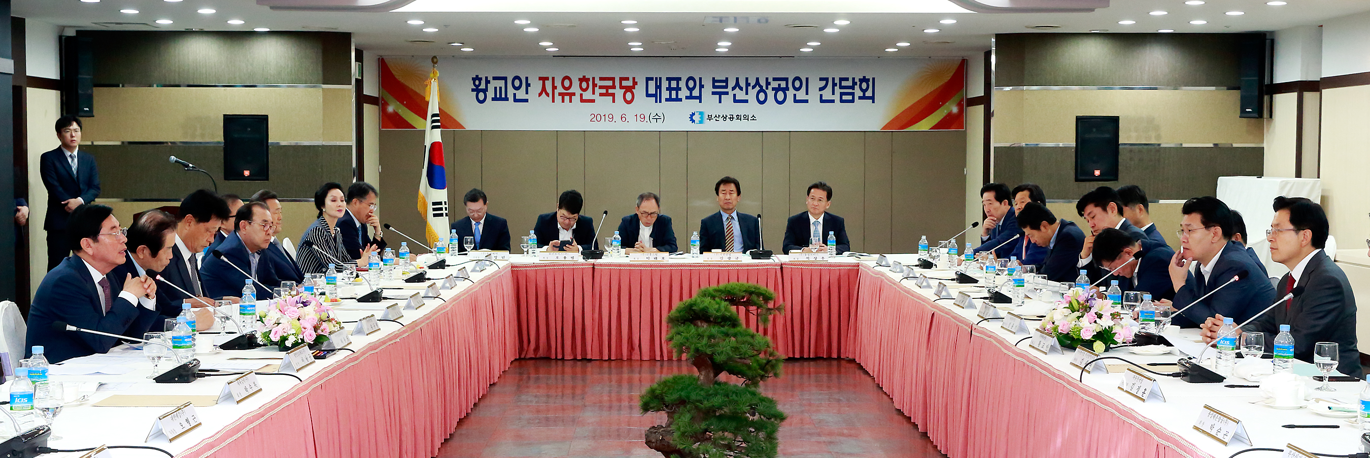 부산상공회의소(회장 허용도)는 지난 6월 19일(수) 오전 7시 30분, 부산상의 국제회의장에서 ‘황교안 자유한국당 대표와 부산상공인 간담회’를 갖고 부산경제 활성화 방안에 대해 다양한 내용을 논의하였다.