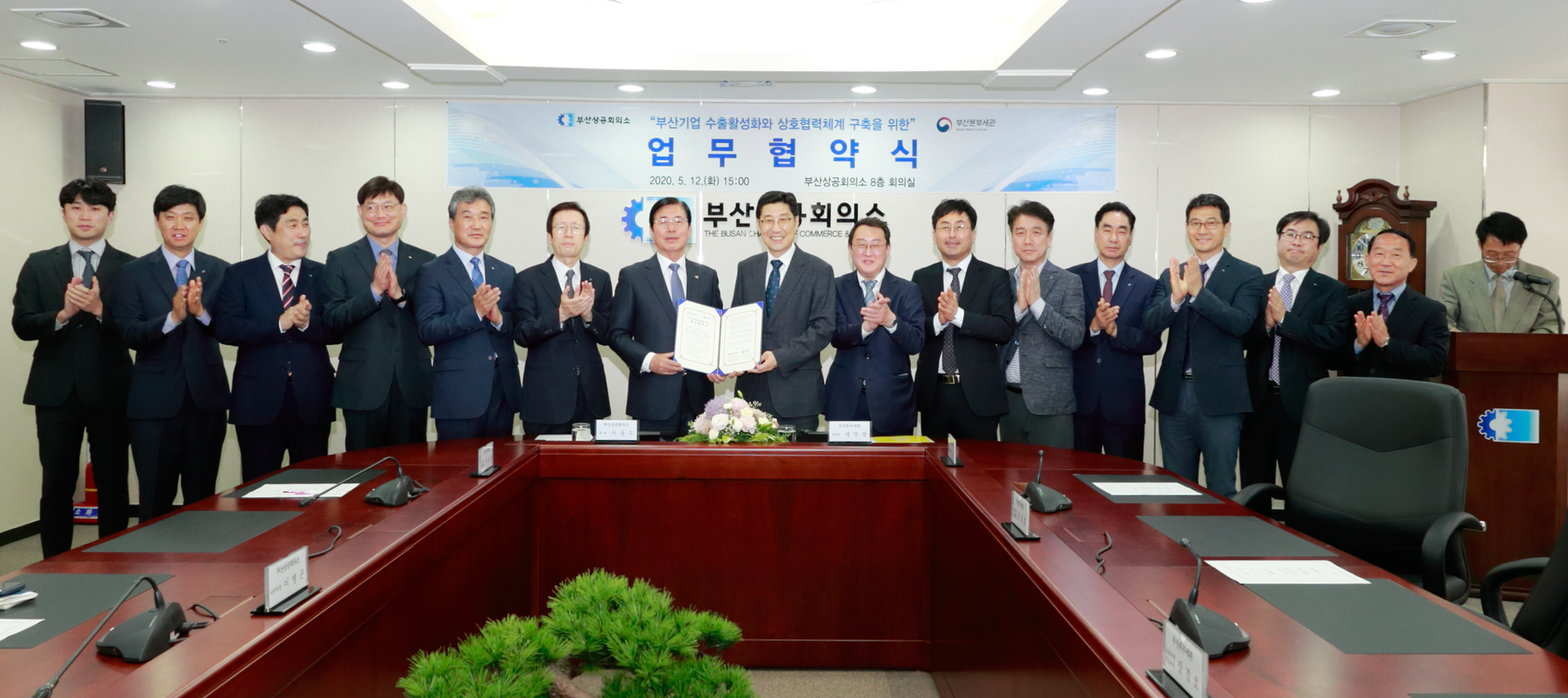 부산상공회의소는 지난 5월 12일(화) 오후 3시 부산상의 8층 회의실에서 부산본부세관과 ‘부산기업 수출 활성화와 상호협력체계 구축’을 위한 업무 협약식을 개최하였다.