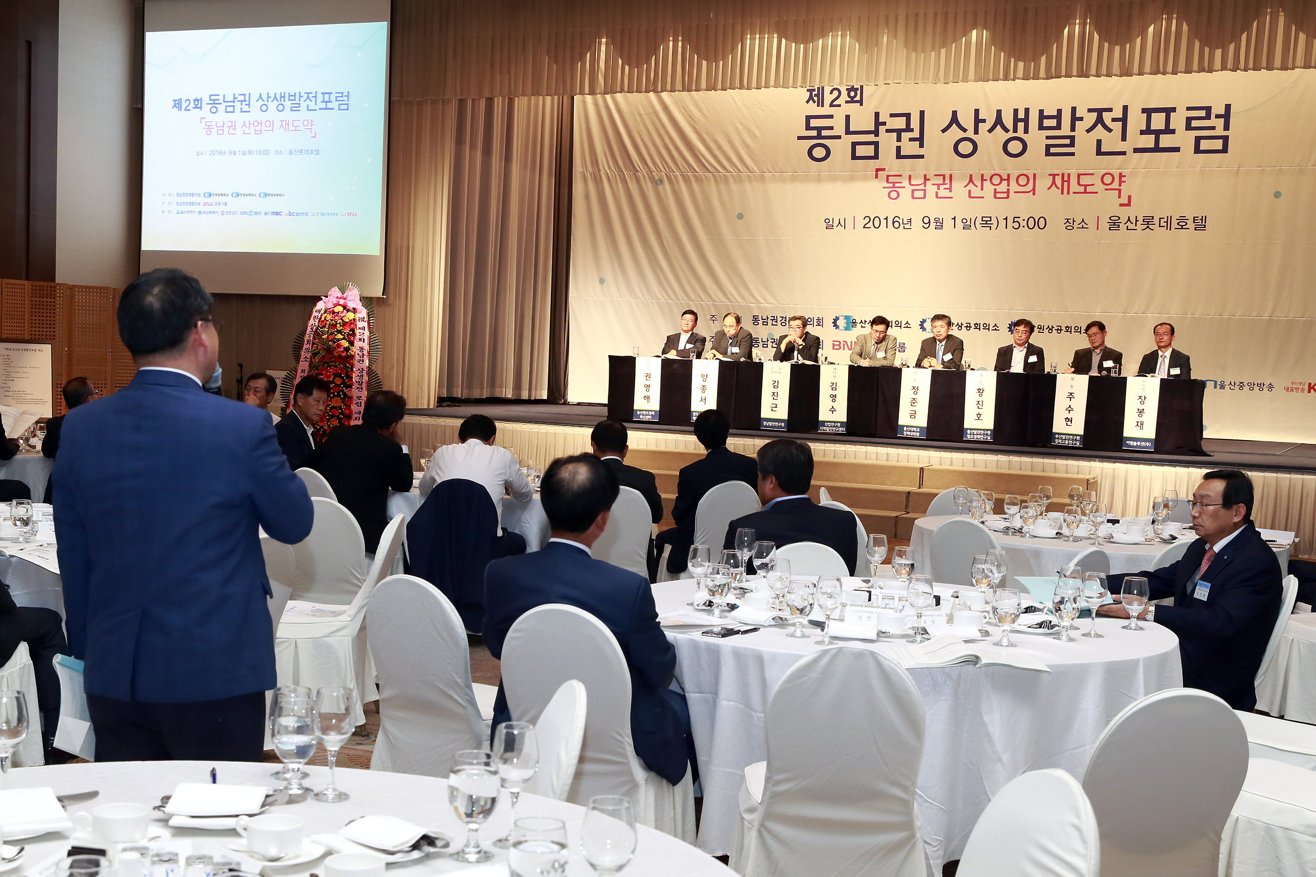 동남권경제협의회(공동의장 조성제 부산상공회의소 회장, 전영도 울산상공회의소 회장, 최충경 창원상공회의소 회장)는 동남권 상생발전 및 비전과 역할을 모색하고자 지난 9월 1일(목) 오후 3시, 울산롯데호텔 2층 크리스탈볼룸에서 ‘제2회 동남권 상생발전 포럼’을 개최했다.