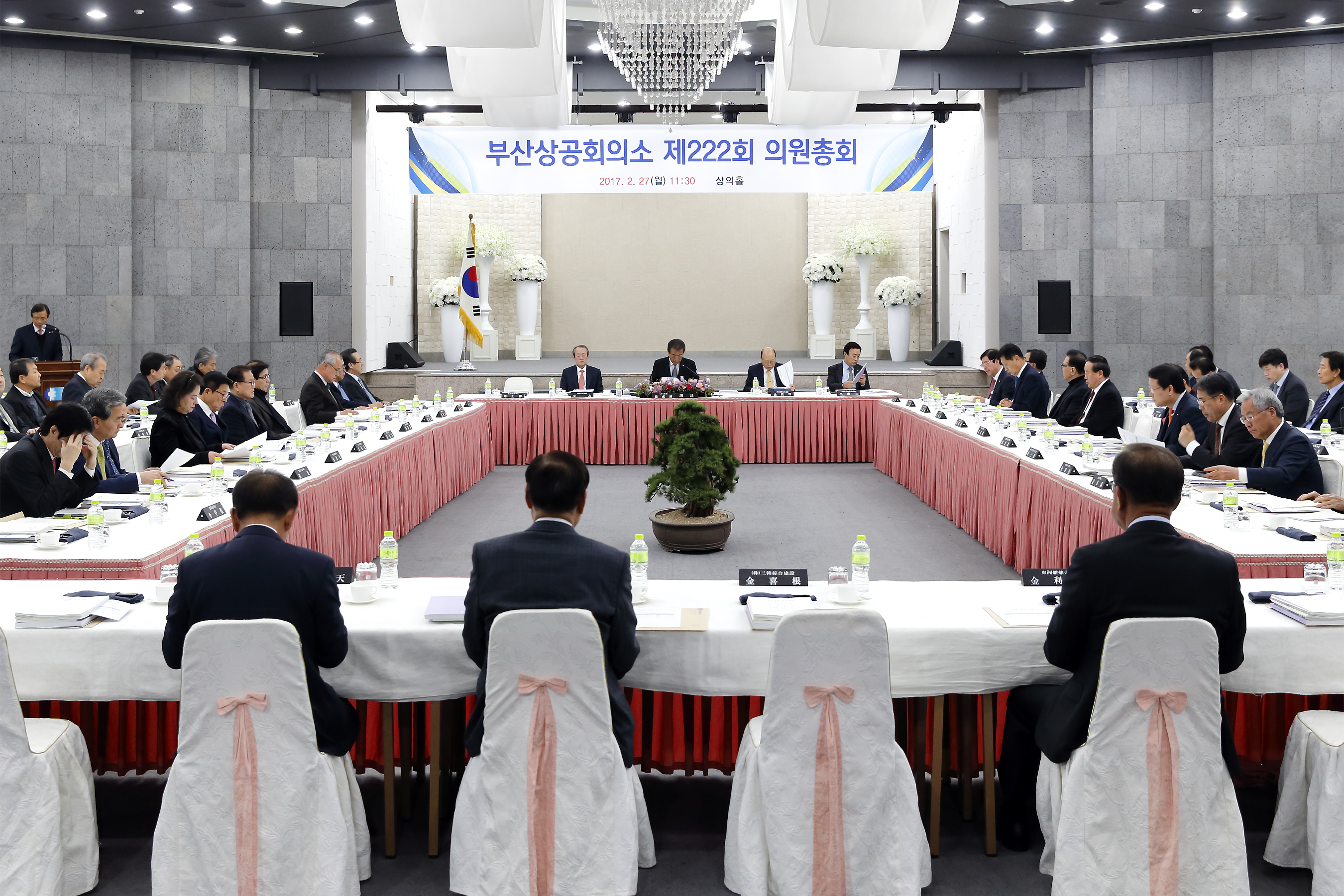 부산상공회의소는 지난 2월 27일(월) 11시 30분 상의홀에서 제222회 의원총회를 개최하고 『2016 회계연도 사업보고 및 결산 승인(안)』,『2016 회계연도 결산수지잔액처분(안)』등의 안건을 처리했다.