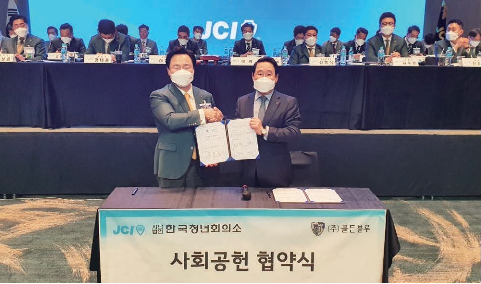 청년단체인 한국청년회의소(한국JC) 와 (주)골든블루가 지난 5월 30일, 부산 시그니엘 호텔에서 사회공헌 협약식을 진행했다.